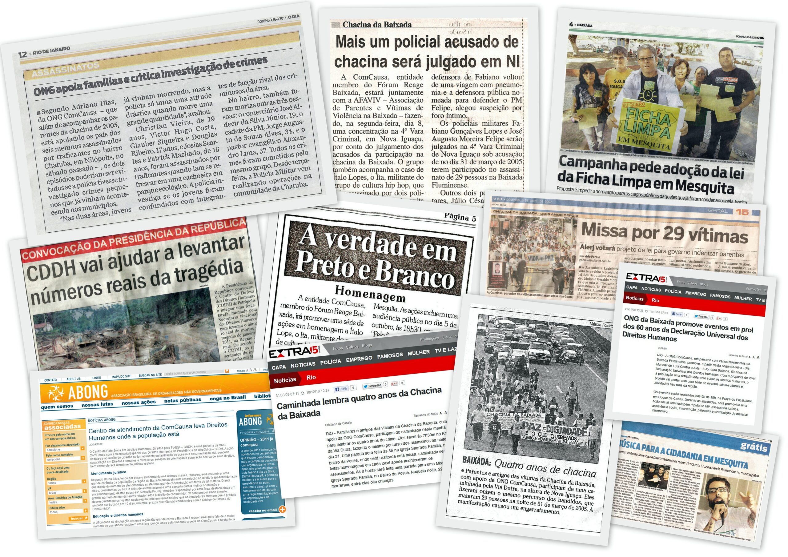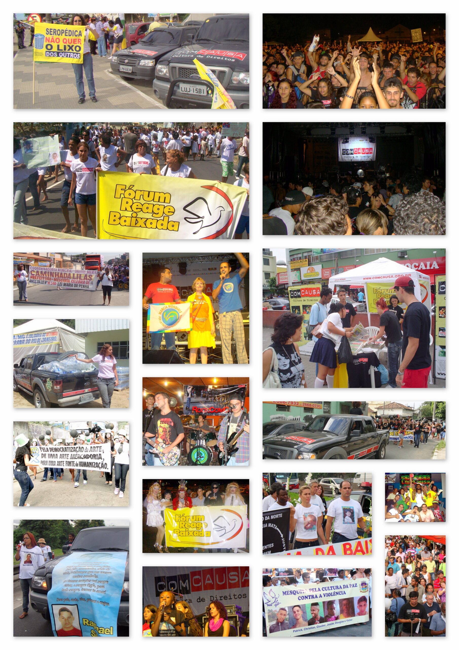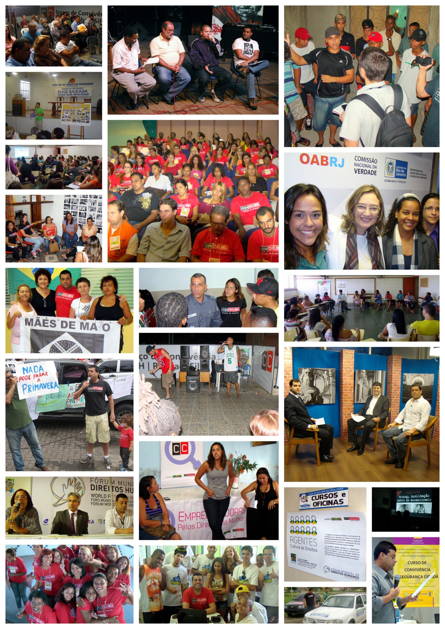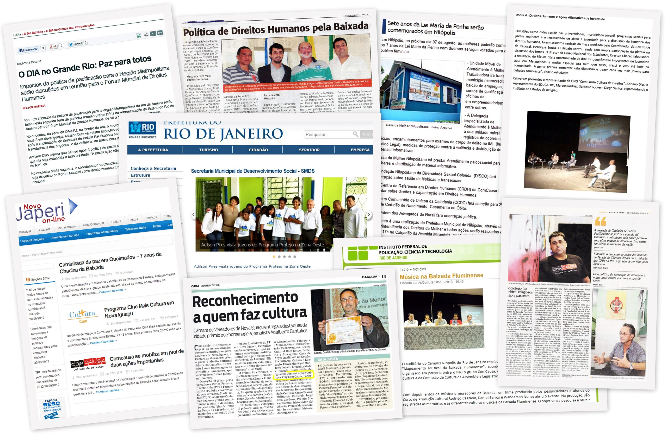 Historicamente, a ComCausa exerce essa articulação por meio de incidência pública e mediações concretas, por exemplo: em 2009, a mediação com mototaxistas e Câmaras Municipais da Baixada Fluminense para apoiar processos de regulamentação e construção de soluções baseadas em direitos, segurança e dignidade; a participação em audiência pública na Comissão de Direitos Humanos da Alerj; e a atuação no encontro pelos 35 anos da Chacina de Acari. Entre outros marcos, em 2025 a ComCausa recebeu reconhecimento na agenda de desaparecidos, em parceria com a Secretaria Municipal de Integração da Cidade do Rio de Janeiro e o Disque Denúncia.
